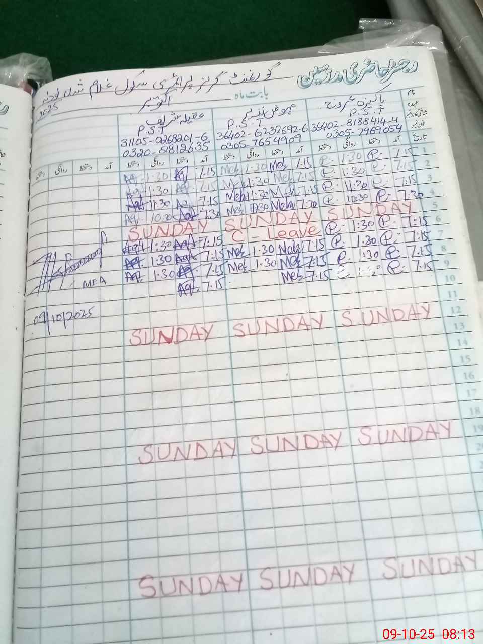 | CNIC | Full Name | Designation | R/C | Absence During Last Calender Month |
