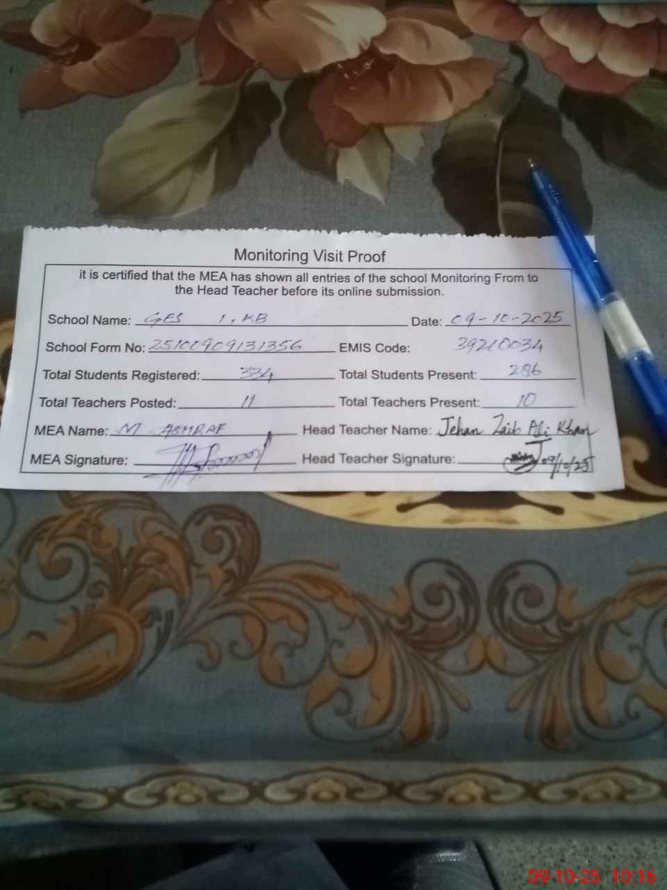 | Certified that this School was Inspected by the Undersigned MEA/DMO Today and the Information Stated Above is as Per Record. | |||||