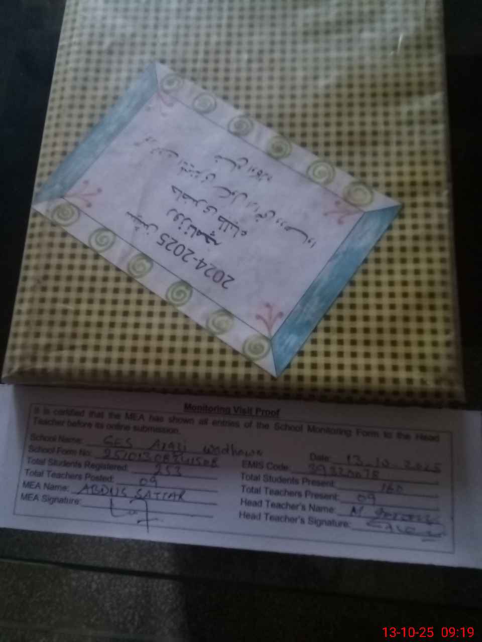 | Certified that this School was Inspected by the Undersigned MEA/DMO Today and the Information Stated Above is as Per Record. | |||||