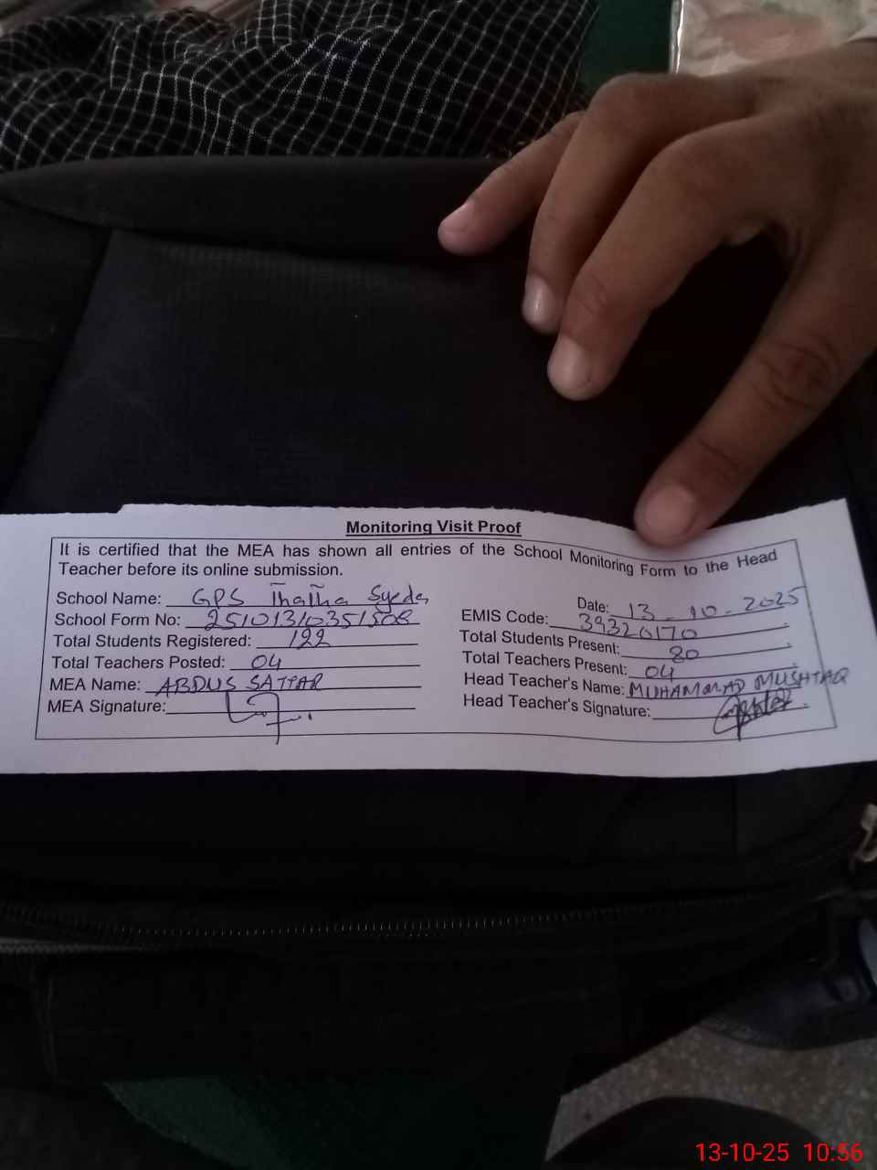 | EMIS Code: 39320170 | Name of School: GPS THATHA SYEDAN | |||