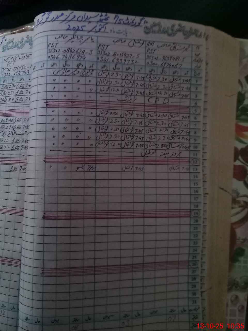 | CNIC | Full Name | Designation | R/C | Absence during last cal. month |