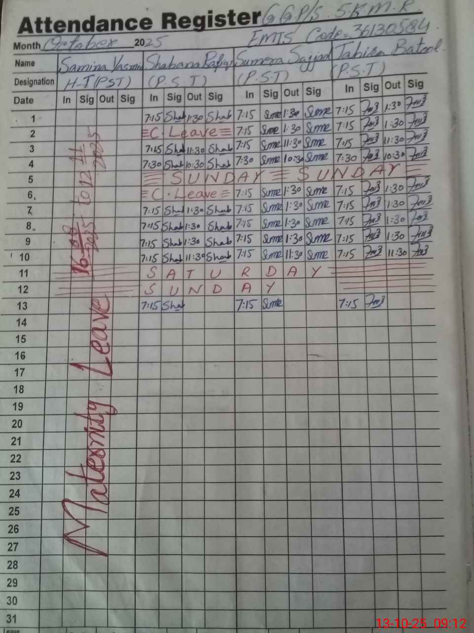 | 36**** | Sa**** Ya**** | PST | Regular | 30 | 0 | 0 | 30 | 0 | 0 | 0 | 0 | 0 | Maternity |