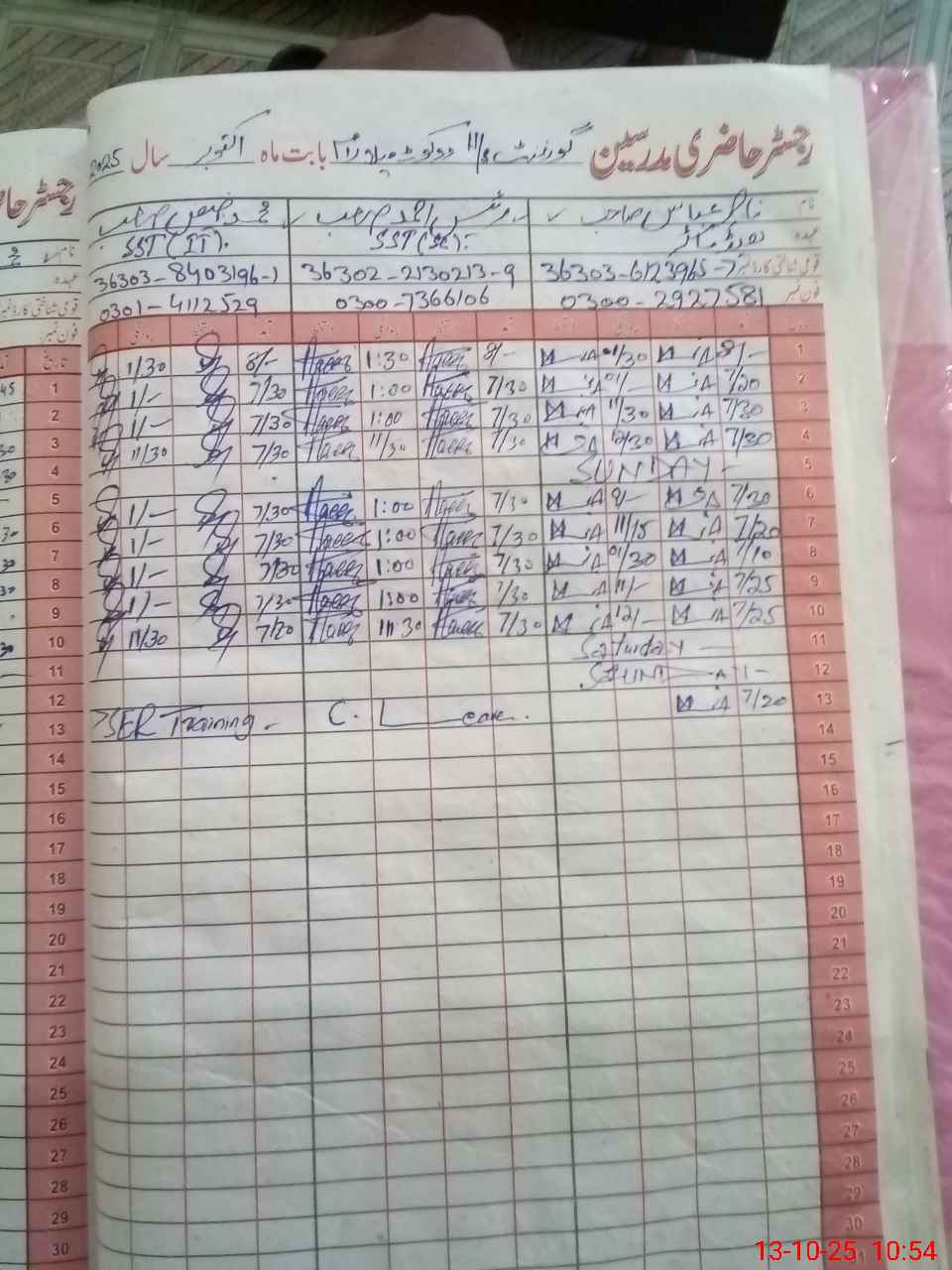 | CNIC | Full Name | Designation | R/C | Absence during last cal. month |
