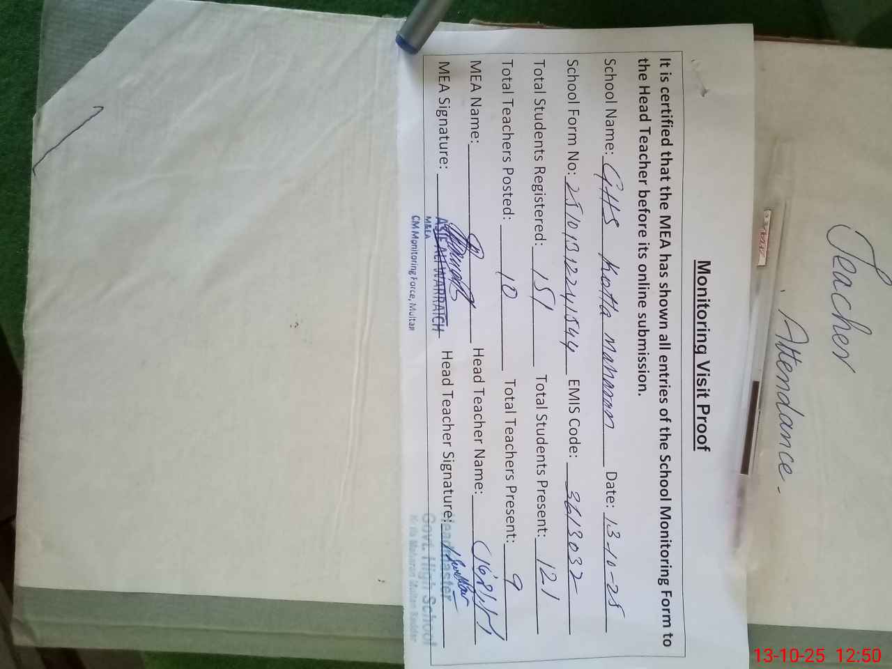 | EMIS Code: 36130032 | Name of School: GHS KOTLA MAHARAN P.O. MULTANI WALA | |||