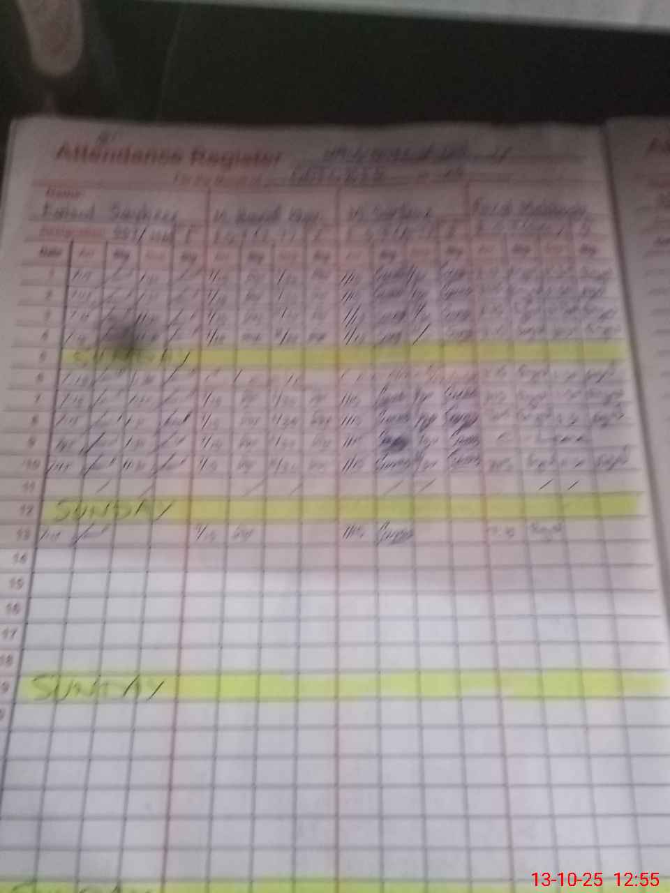 | CNIC | Full Name | Designation | R/C | Absence During Last Calender Month |