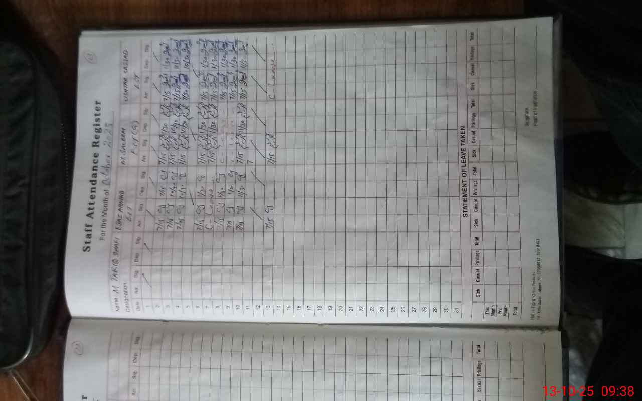 | CNIC | Full Name | Designation | R/C | Absence During Last Calender Month |