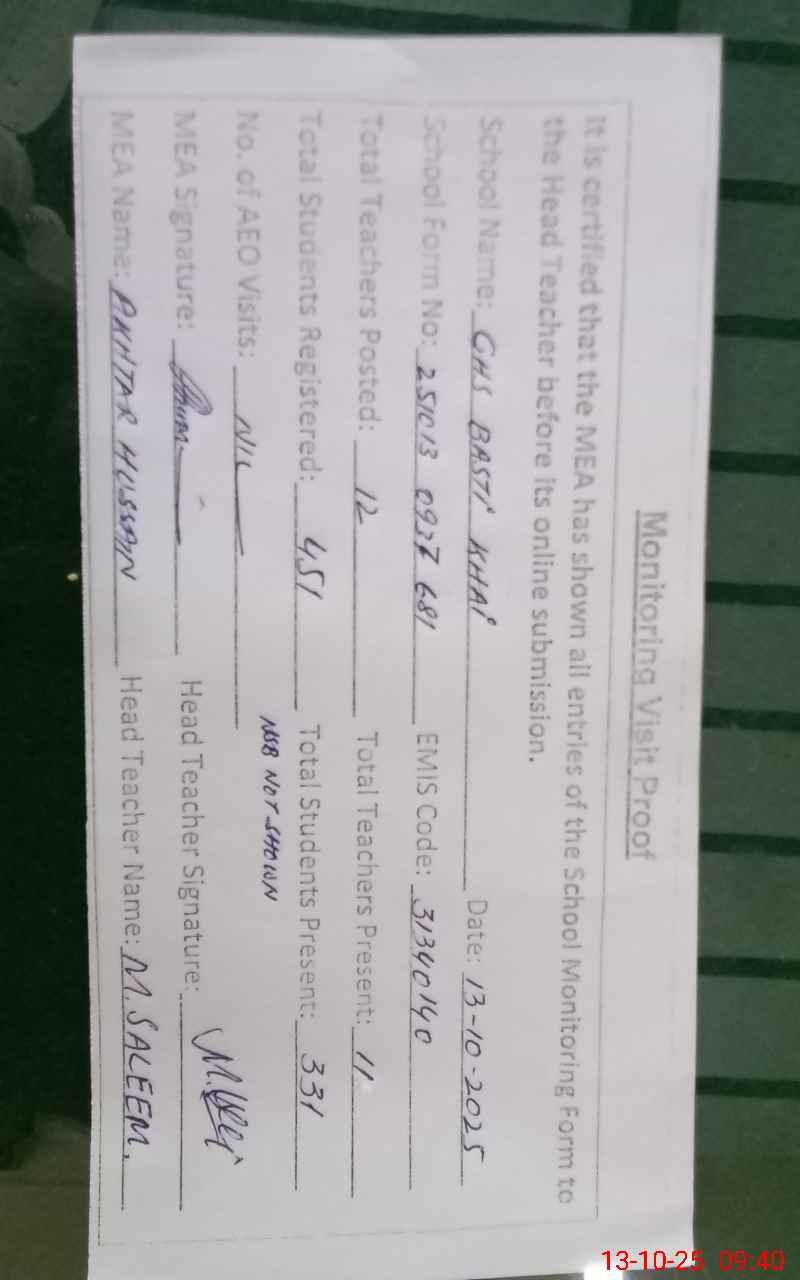 | EMIS Code: 31340140 | Name of School: GHS BASTI KHAHI | |||