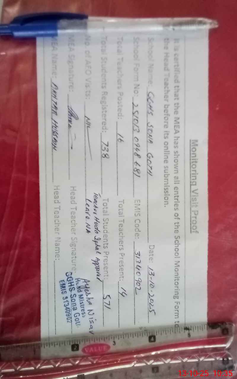 | EMIS Code: 31340902 | Name of School: GGHS SONA GOTH | |||