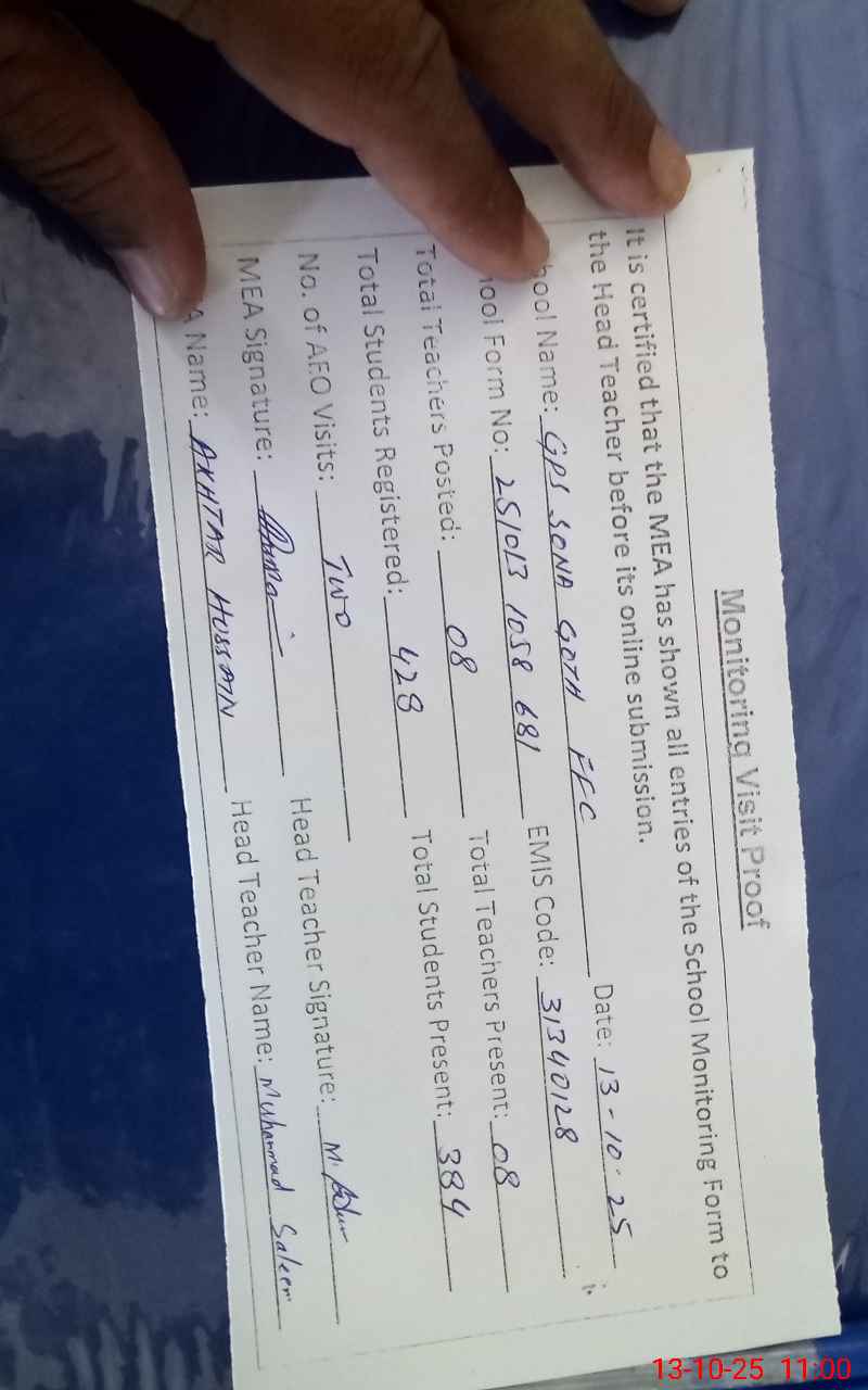| EMIS Code: 31340128 | Name of School: GPS SONA GOTH FFC | |||