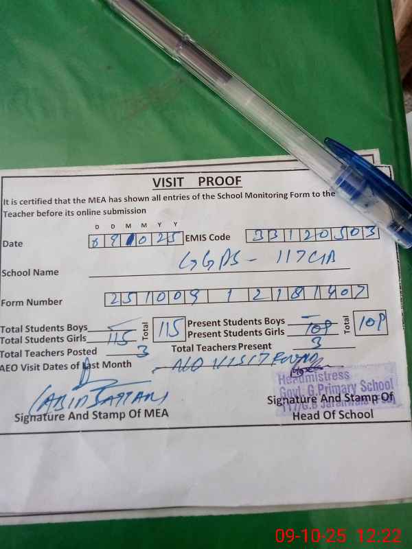 | Attendance Register | Head Teacher | MEA with School | Visit Proof |