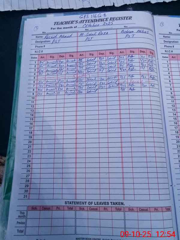 | Name: RA**** AH**** Designation: (School Headmaster's/Headmistress's) PST Phone/Cell Number: 03**** |