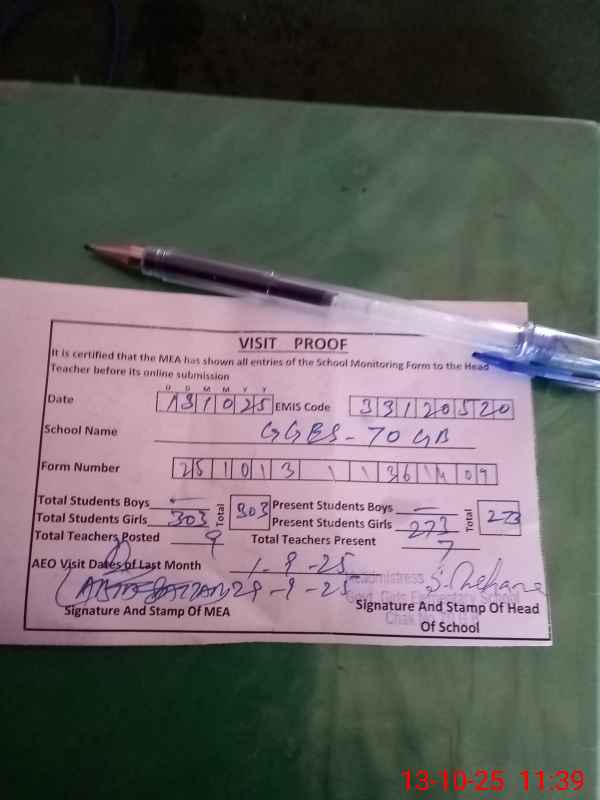 | EMIS Code: 33120520 | Name of School: GGES CHAK 70 GB SATIANA | |||