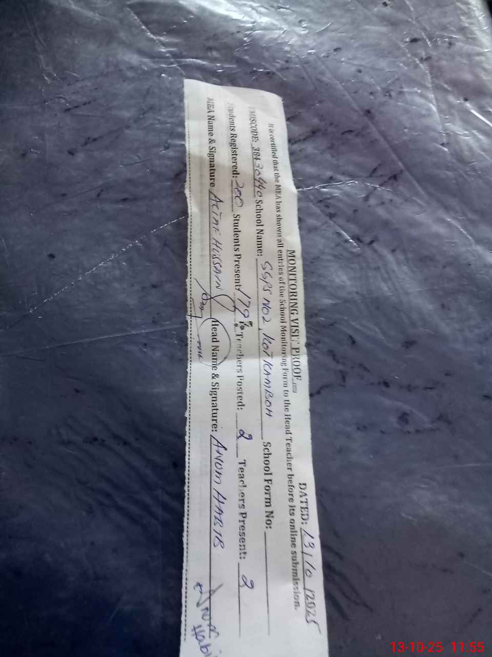 | Attendance Register | Head Teacher | MEA with School | Visit Proof |