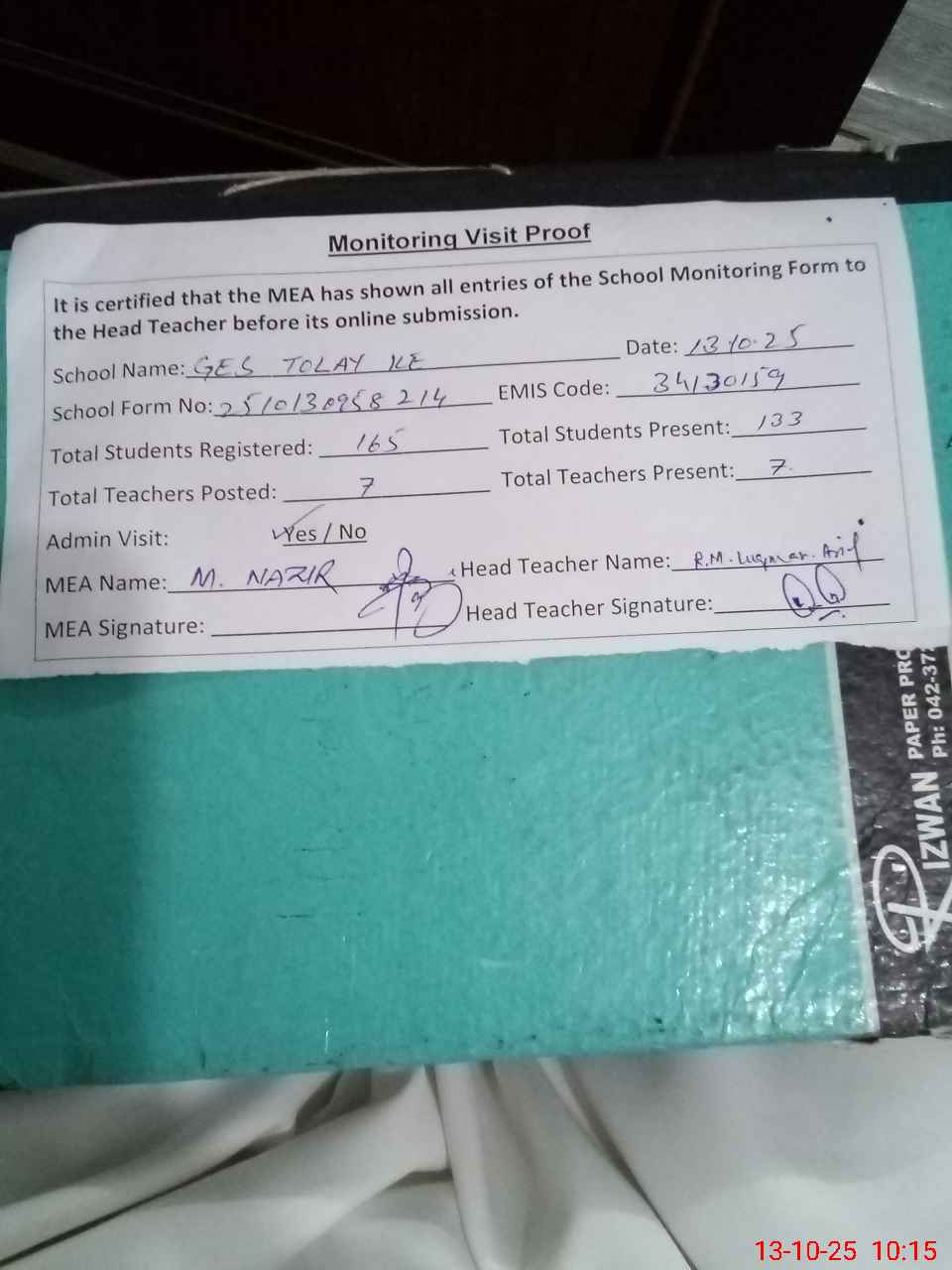 | EMIS Code: 34130159 | Name of School: GES TOLEKE | |||