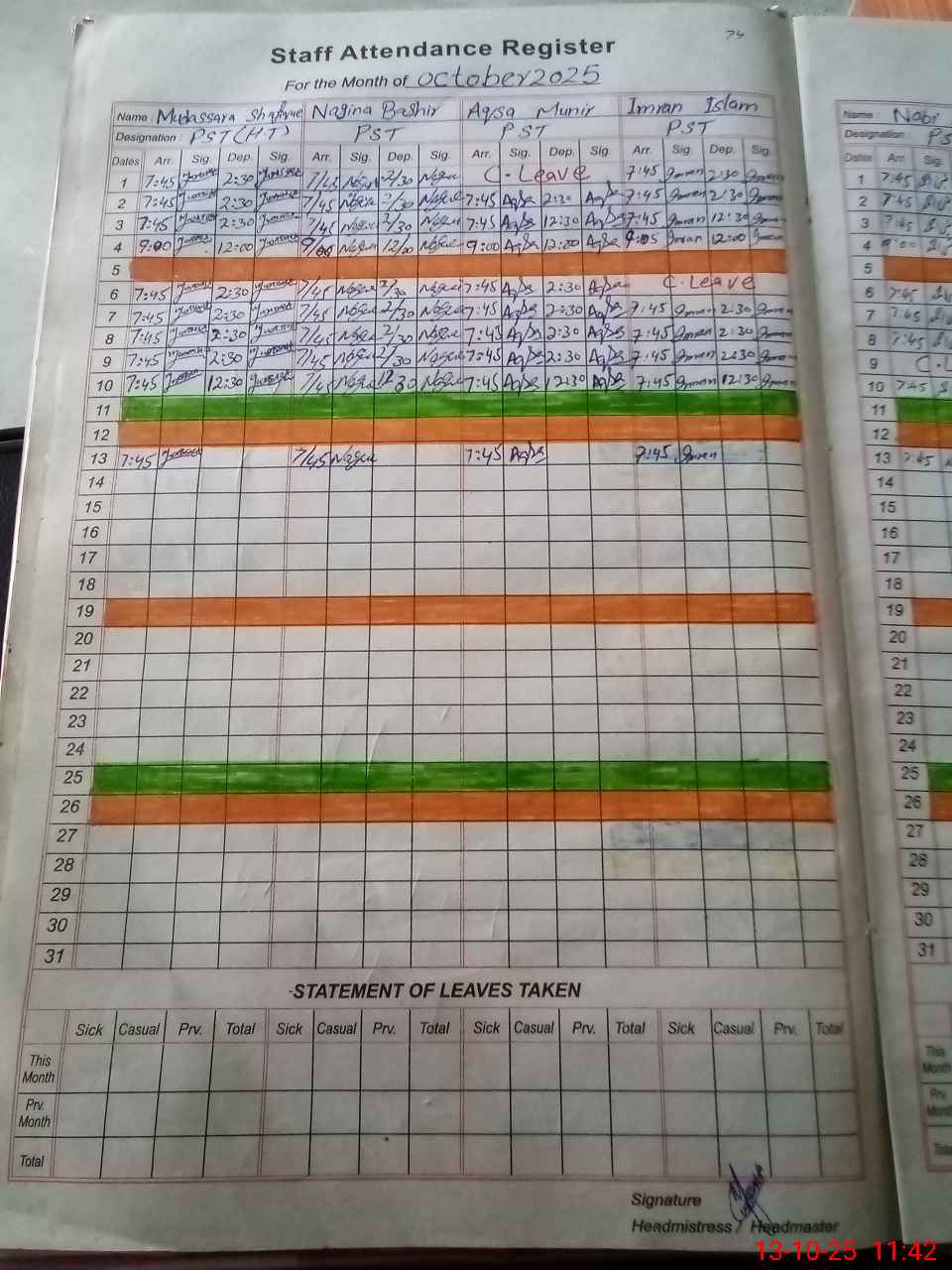 | Leave | Duty | Absent | Maternity | Medical | Ex- Pak |