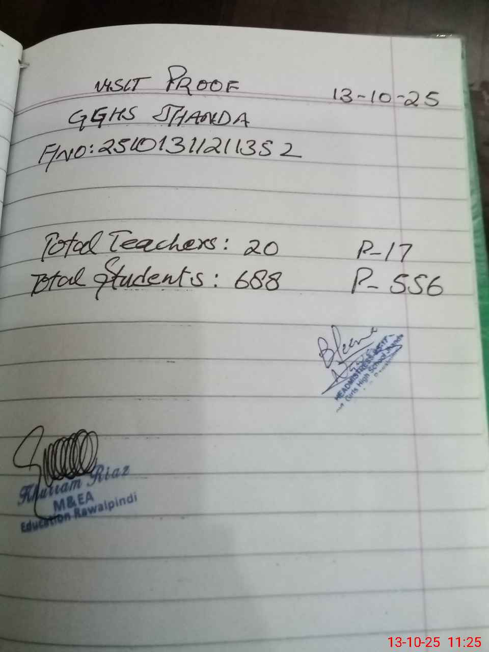 | EMIS Code: 37360044 | Name of School: GGHS JHANDA GUJAR KHAN | |||