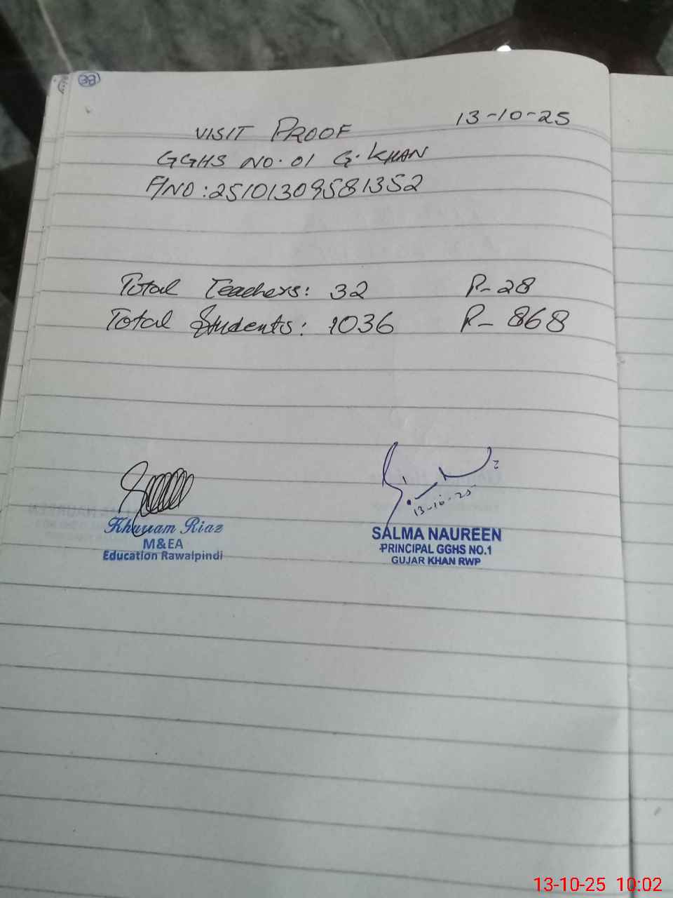 | EMIS Code: 37360043 | Name of School: GGHS NO. 1 GUJAR KHAN | |||