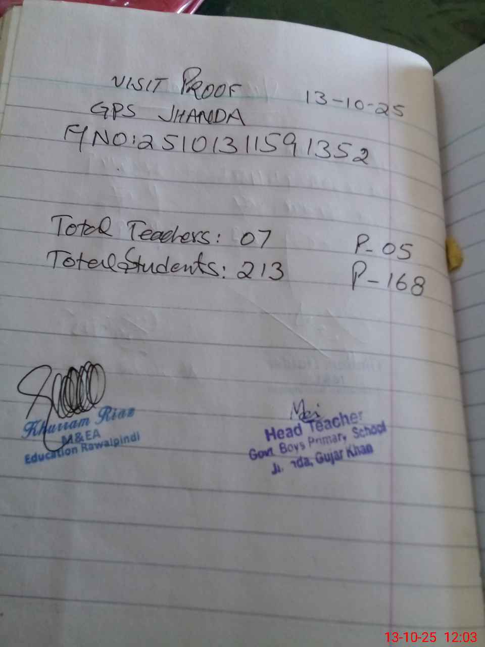 | EMIS Code: 37360149 | Name of School: GPS JHANDA | |||