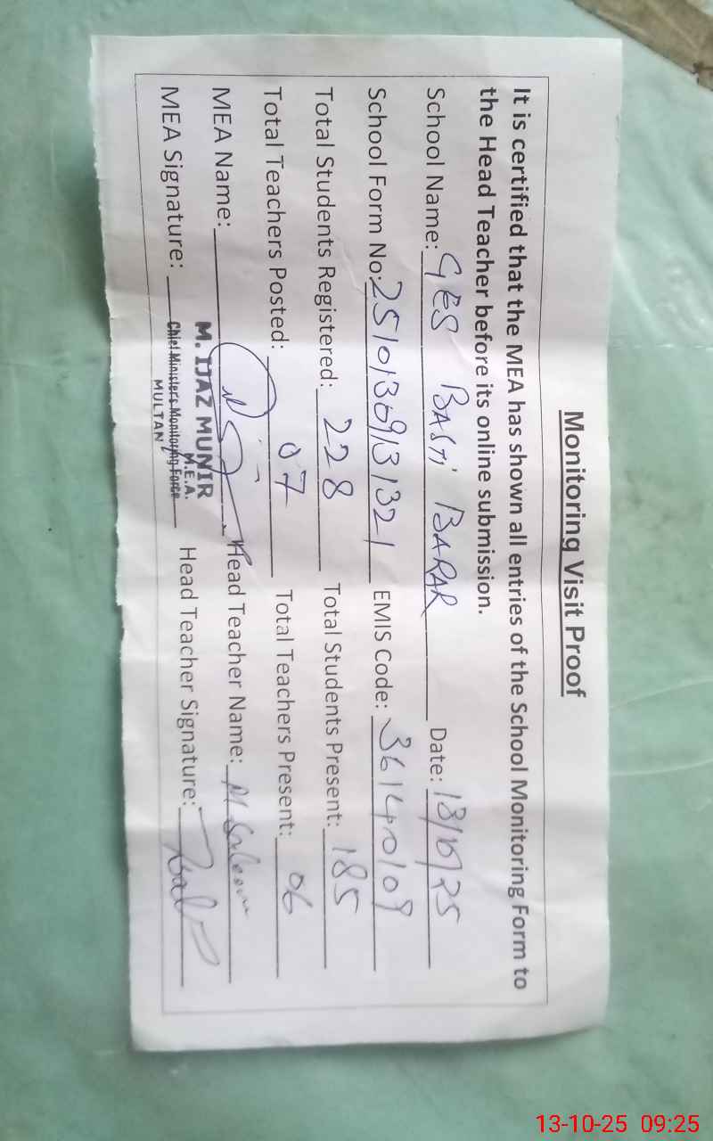 | EMIS Code: 36140109 | Name of School: GES BASTI BARAR (AMIN ABAD) | |||