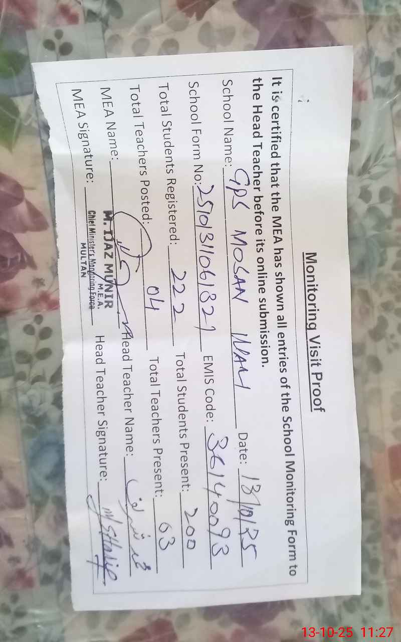 | EMIS Code: 36140093 | Name of School: GPS MOSIN WALI JALALPUR PIRWALA | |||