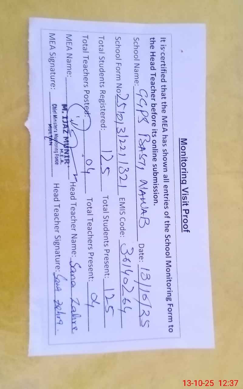 | EMIS Code: 36140264 | Name of School: GGPS BASTI NAWAB JALALPUR PIRWALA | |||