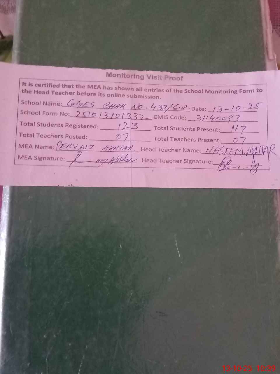 | EMIS Code: 31140093 | Name of School: GGES CHAK 437/6-R | |||