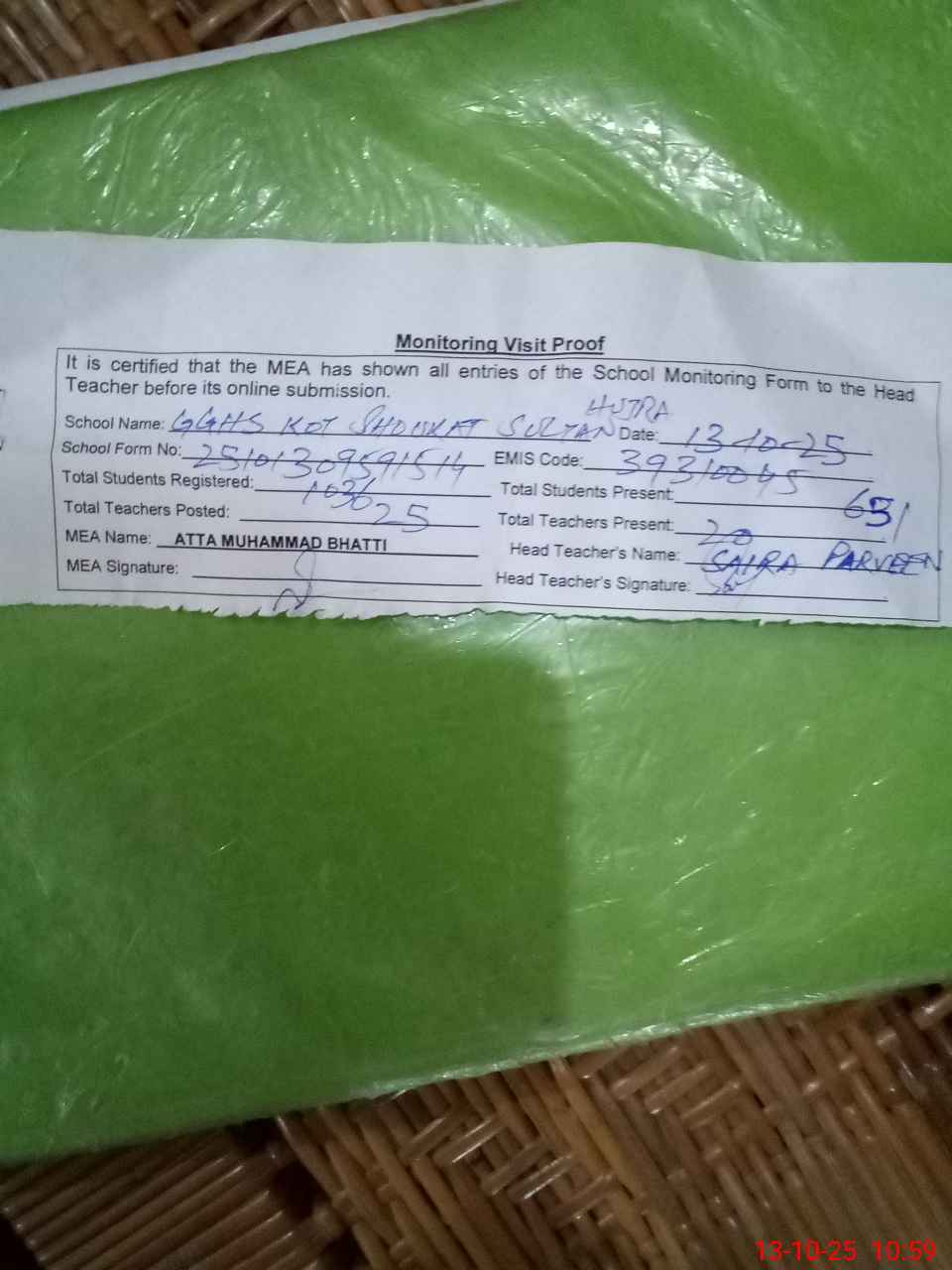 | EMIS Code: 39310045 | Name of School: GGHS KOT SHOUKAT SULTAN | |||