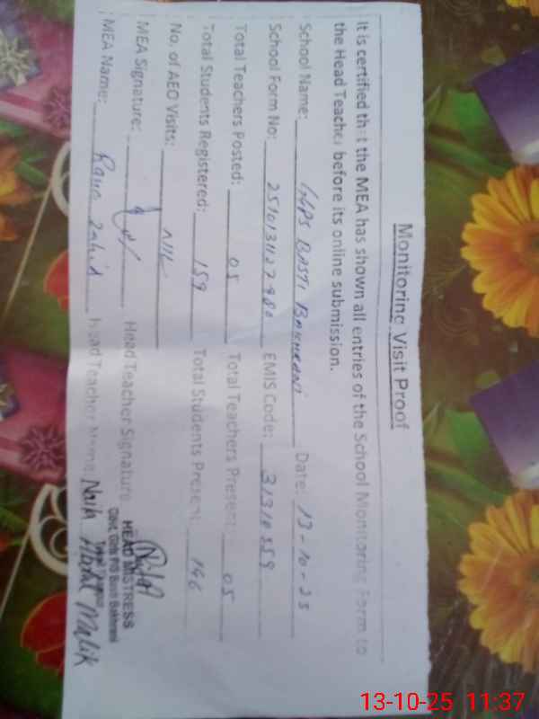 | Certified that this School was Inspected by the Undersigned MEA/DMO Today and the Information Stated Above is as Per Record. | |||||