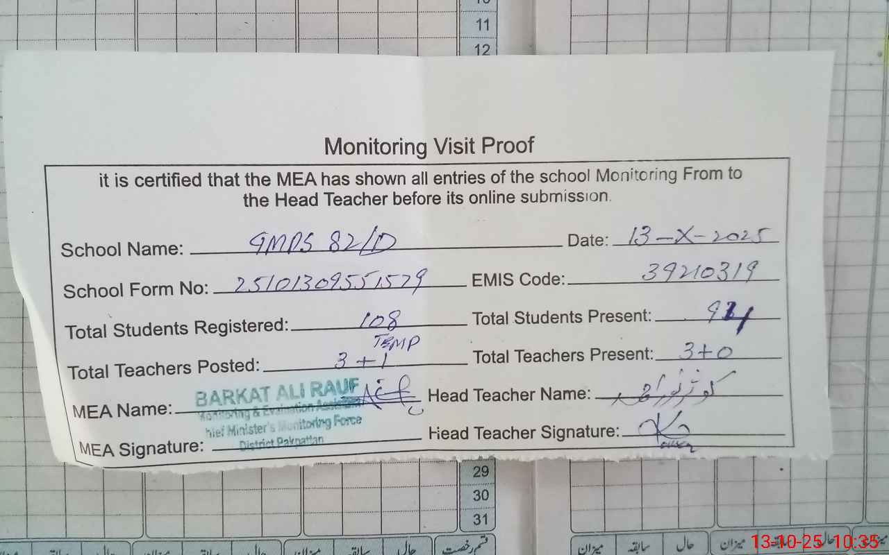 | EMIS Code: 39210319 | Name of School: GMPS 82 D | |||