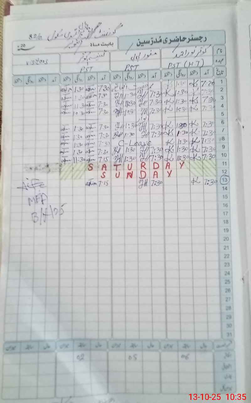 | CNIC | Full Name | Designation | R/C | Absence During Last Calender Month |