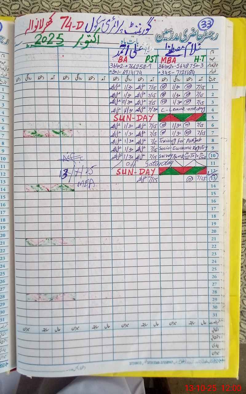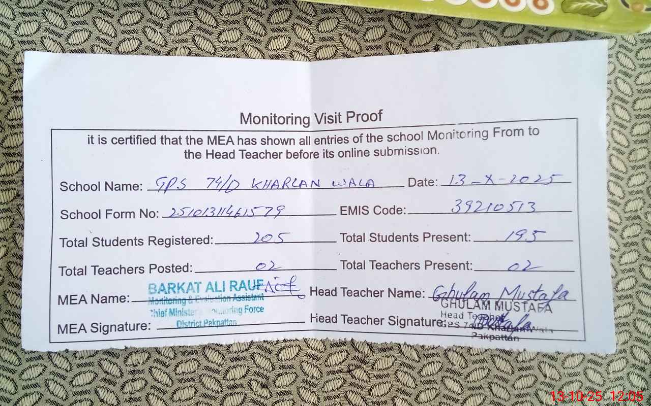 | EMIS Code: 39210513 | Name of School: GPS CHAK NO.74 D KHARLAN WALA | |||