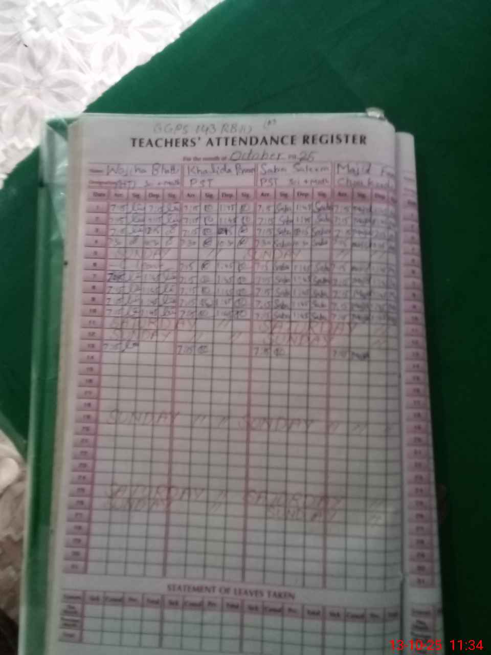| Remarks (Use Separate Page if Required): AEO has not visited last month in this school | |||||