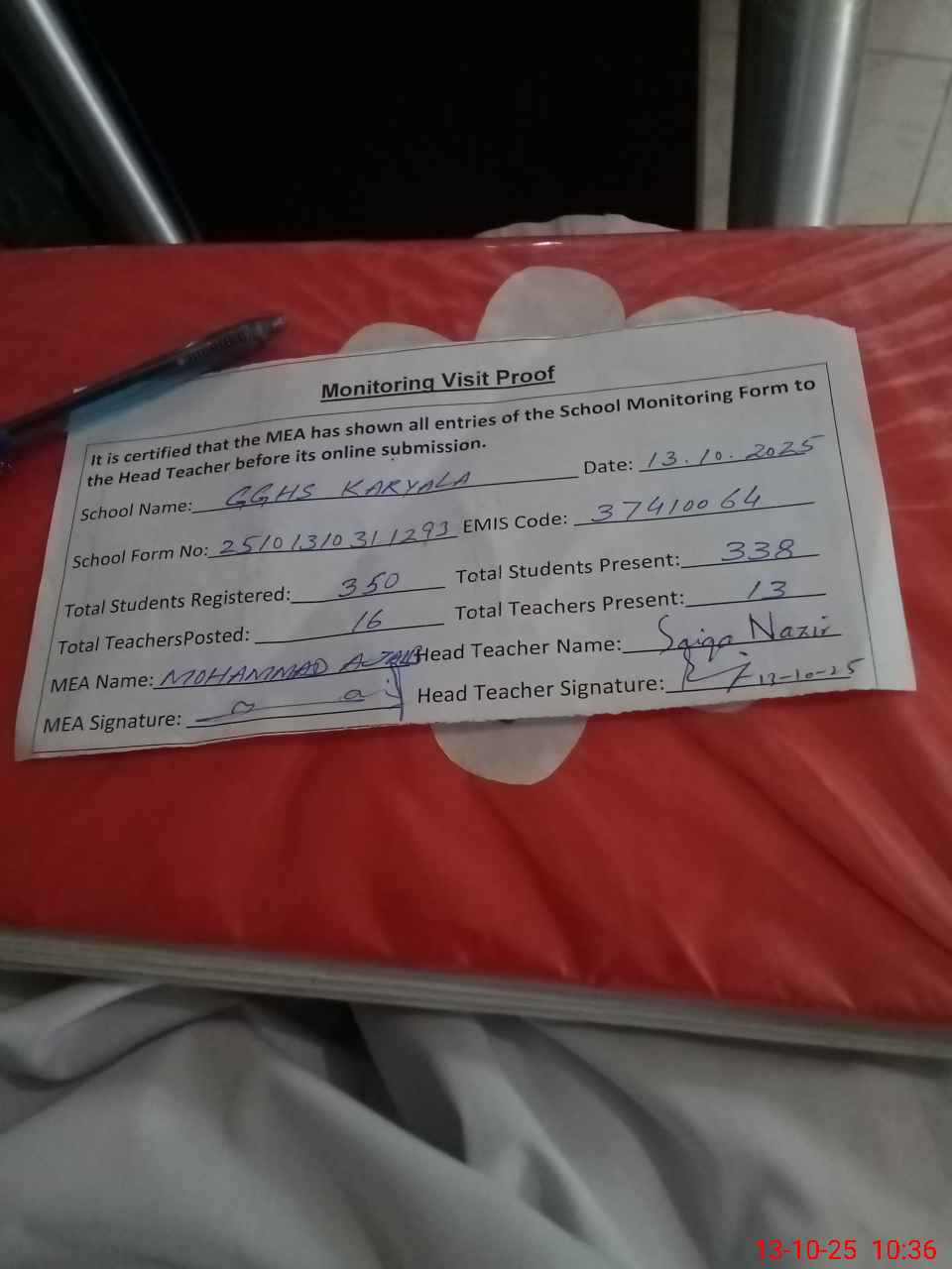 | EMIS Code: 37410064 | Name of School: GGHS KARYALA | |||
