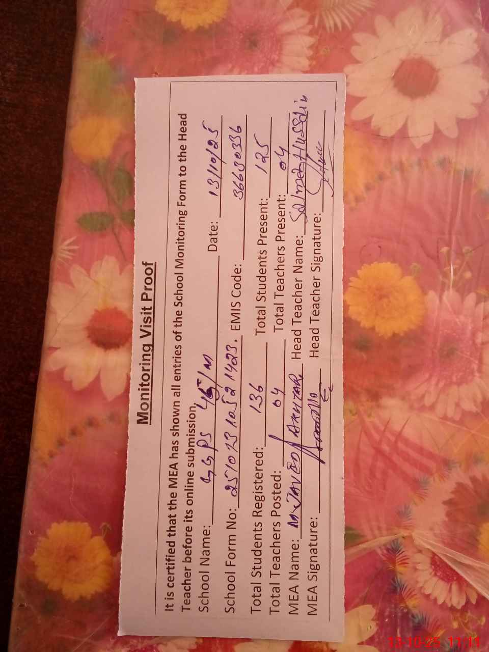 | Certified that this School was Inspected by the Undersigned MEA/DMO Today and the Information Stated Above is as Per Record. | |||||