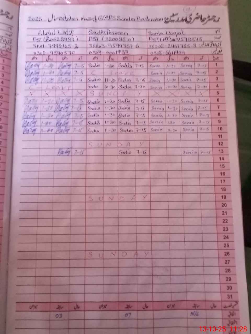 | Name: So**** Li**** Designation: (School Headmaster's/Headmistress's) PST Phone/Cell Number: 03**** |