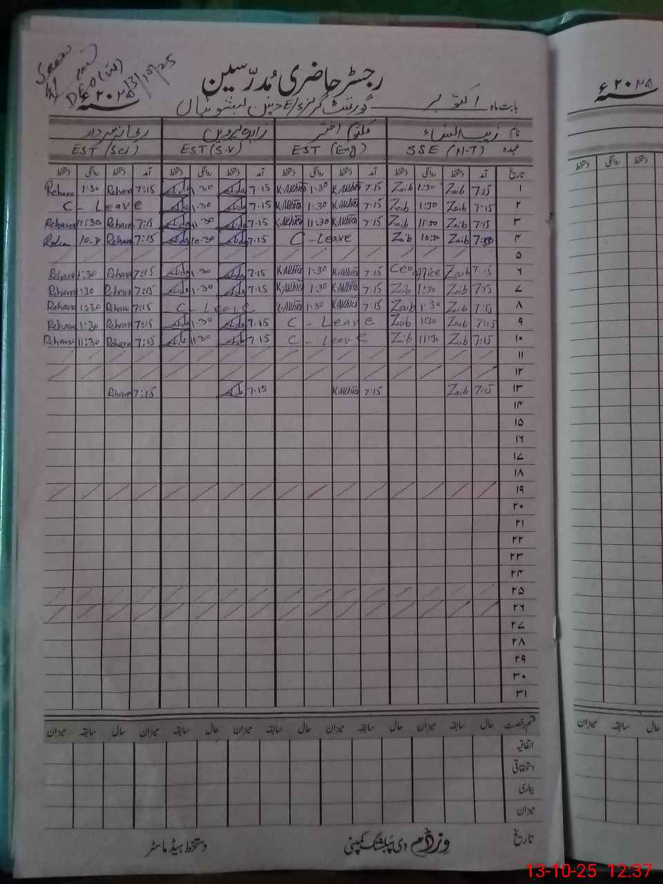 | 31**** | Na**** Gh**** Mu**** | 1 | 1 | 0 | 0 | 0 | 0 | 0 | 0 | 0 | 0 | 0 | Absent (Un-Authorized) |