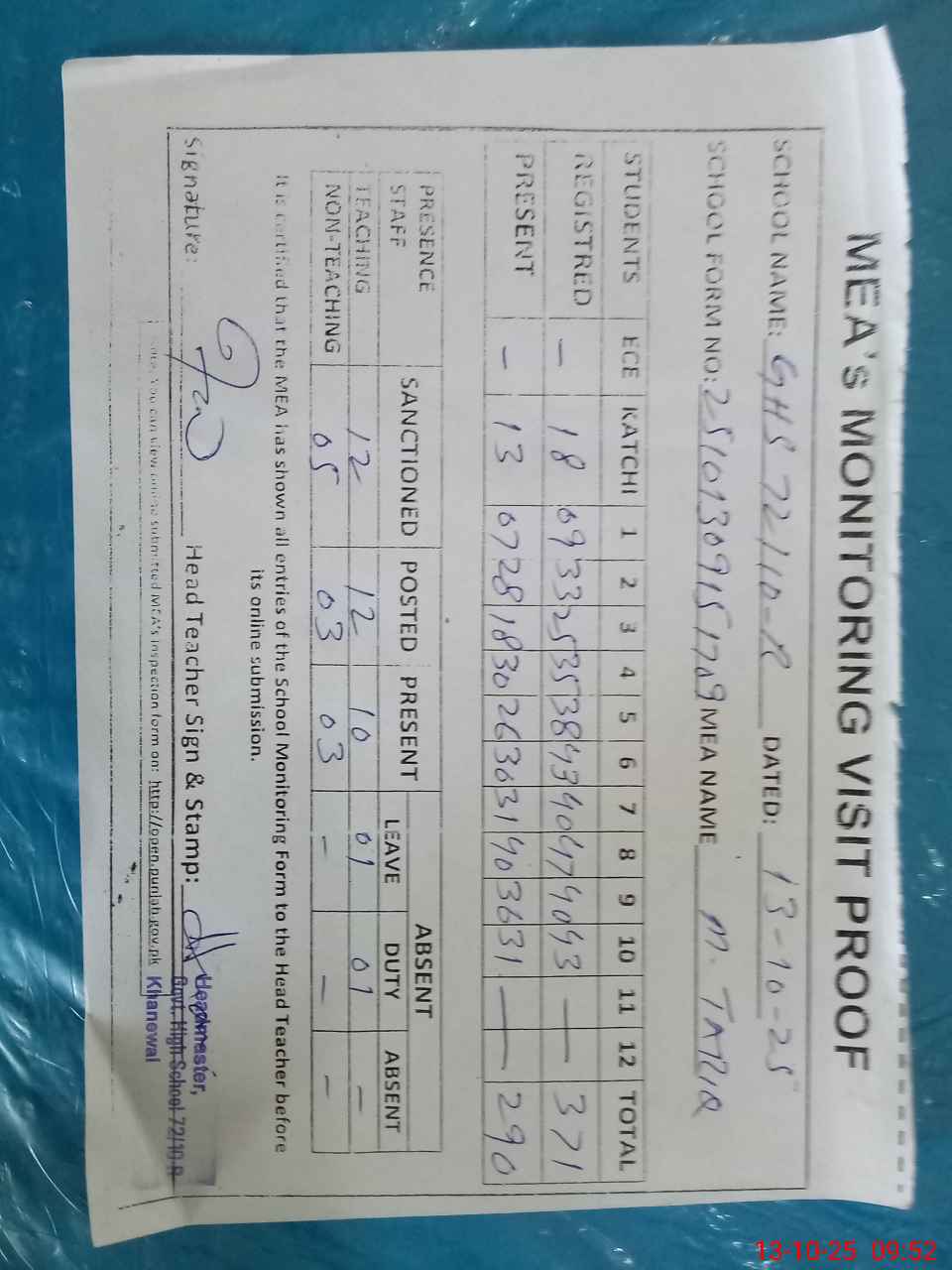 | EMIS Code: 36420016 | Name of School: GHS 72/10-R, SHANTI NAGAR, KHANEWAL | |||
