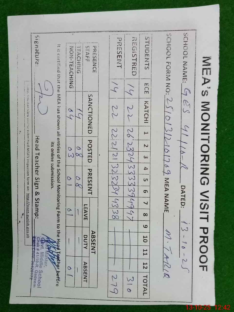 | EMIS Code: 36420172 | Name of School: GES 41/10-R QADEEM, KHANEWAL | |||