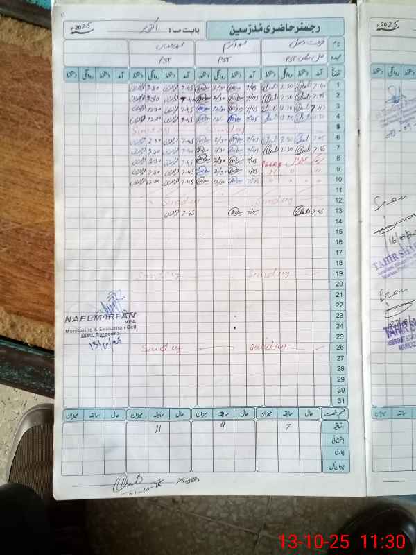 | Attendance Register | Head Teacher | MEA with School | Visit Proof |