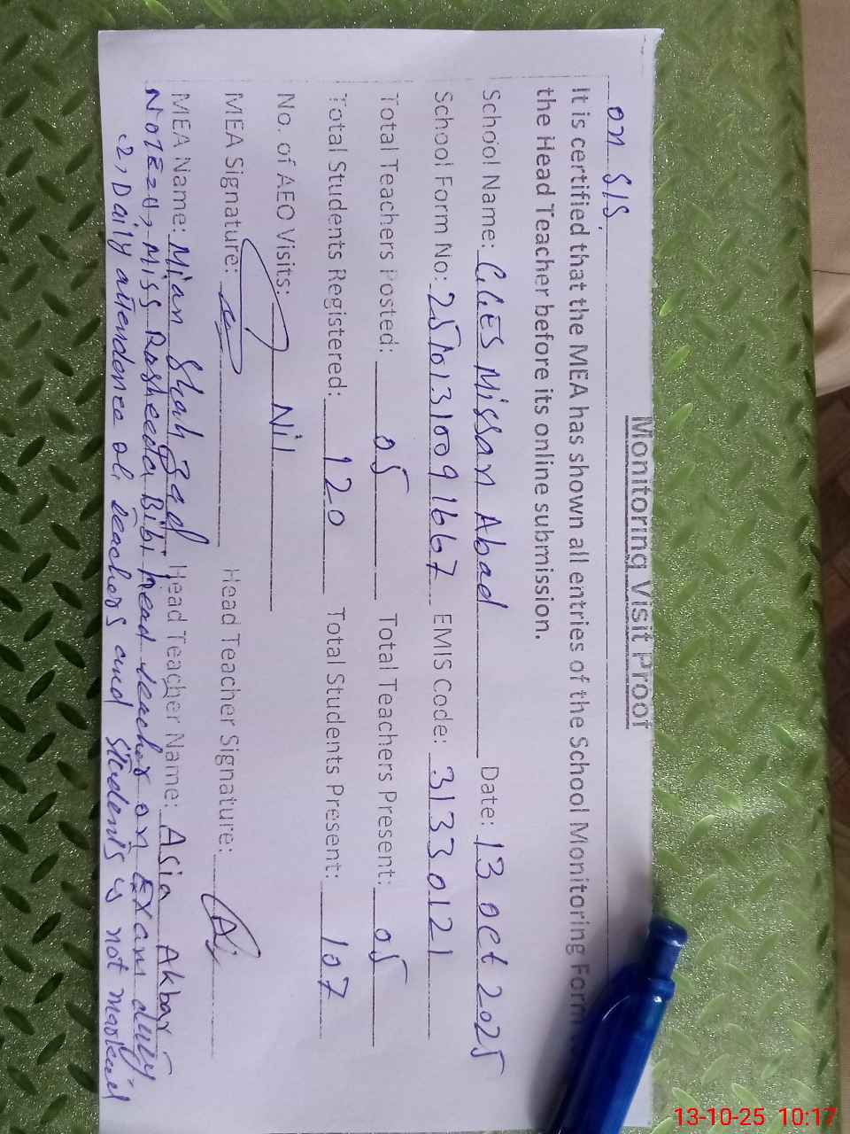 | Certified that this School was Inspected by the Undersigned MEA/DMO Today and the Information Stated Above is as Per Record. | |||||