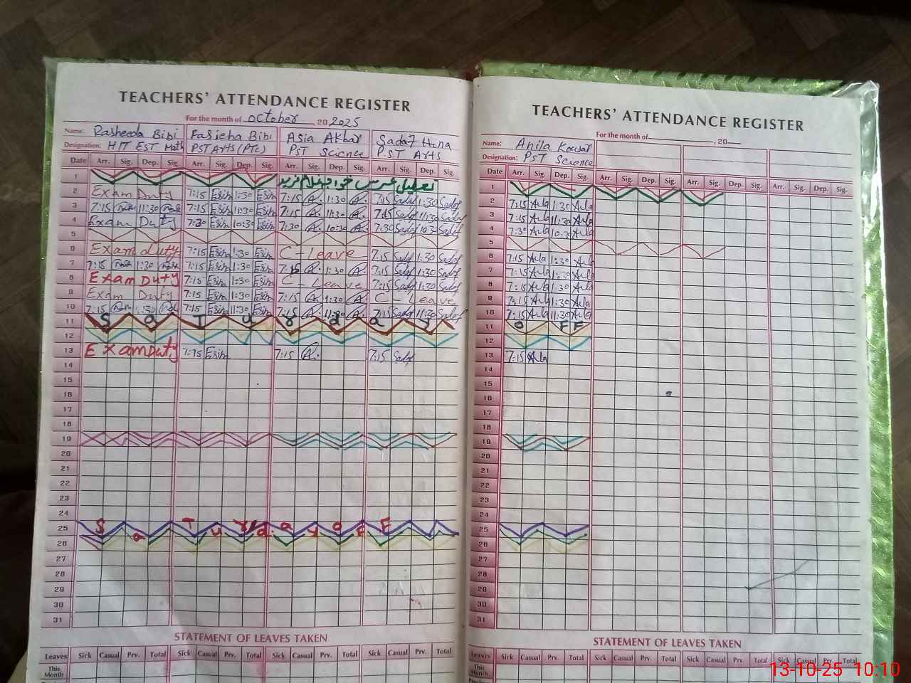 | Remarks (Use Separate Page if Required): 1 Daily attendance of teachers and students is not marked on SIS 2 Miss Rashida Bibi head teacher on exam duty | |||||