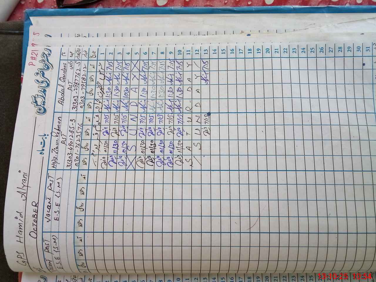 | CNIC | Full Name | Designation | R/C | Absence during last cal. month |