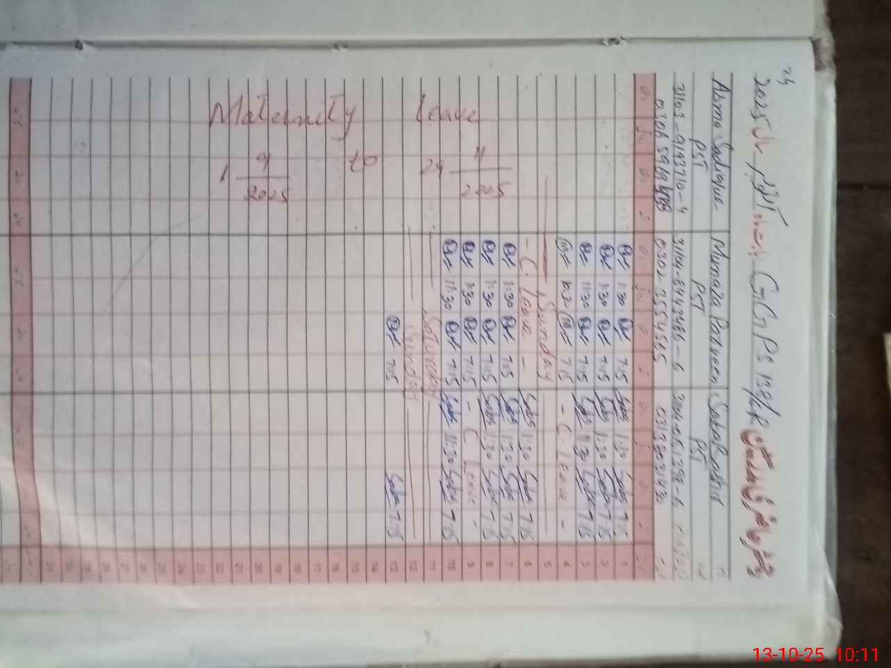 | Leave | Duty | Absent | Maternity | Medical | Ex- Pak |