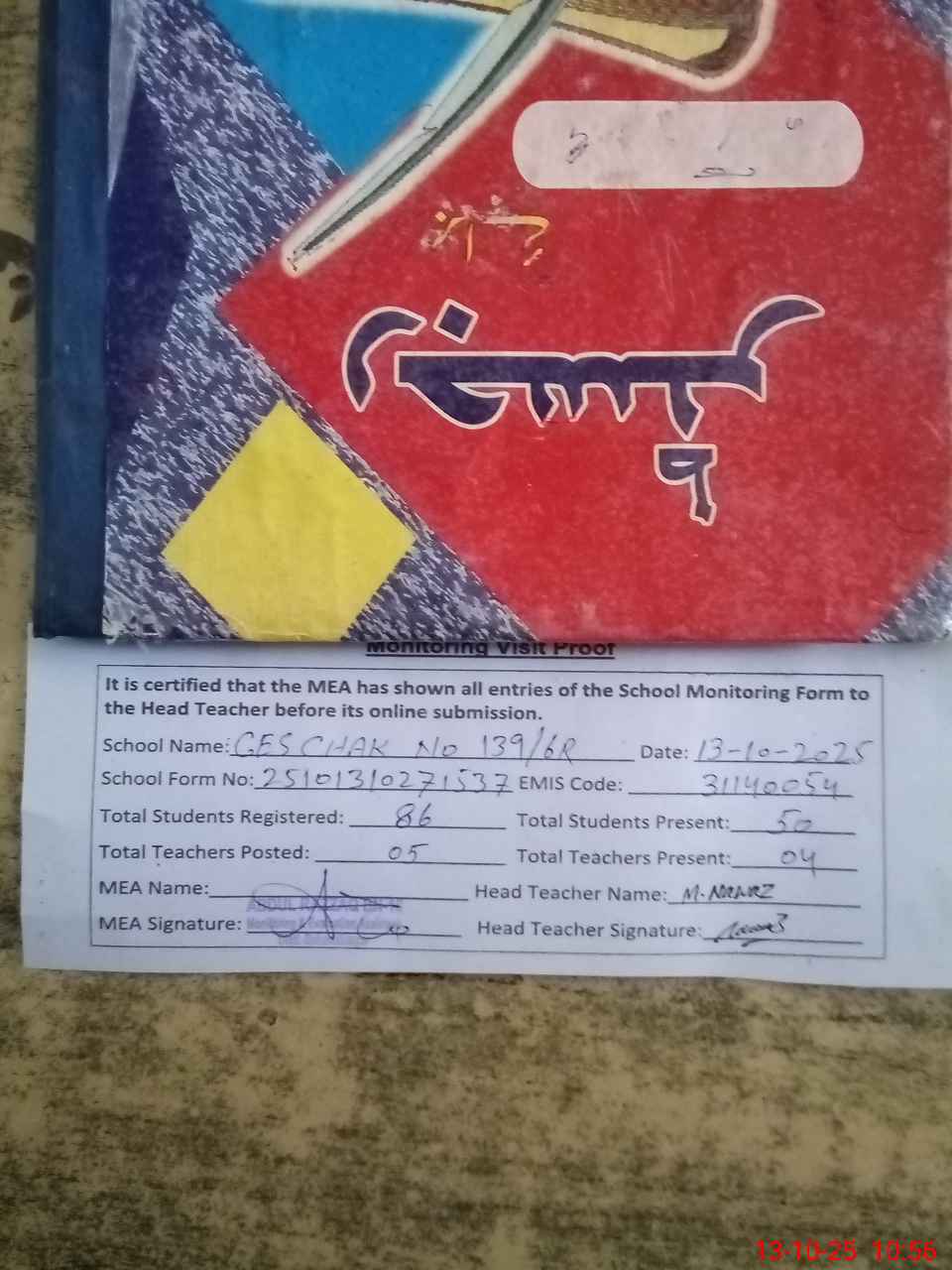 | Attendance Register | Head Teacher | MEA with School | Visit Proof |