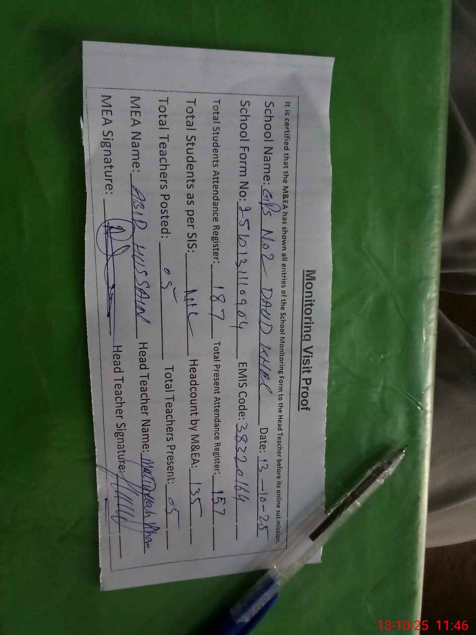 | EMIS Code: 38320364 | Name of School: GPS NO. 2 DAUD KHEL | |||