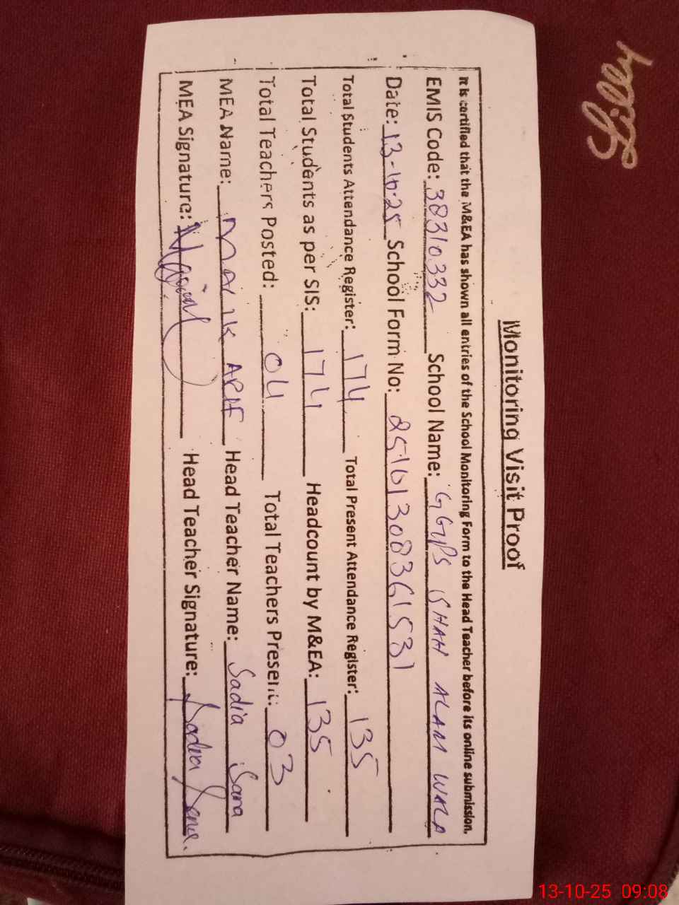 | EMIS Code: 38310332 | Name of School: GGPS SHAH ALAM WALA | |||