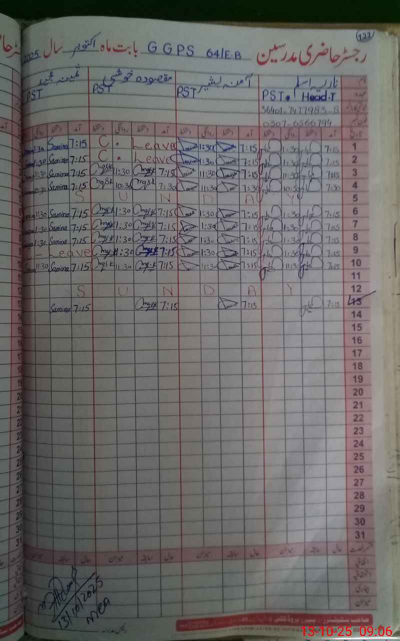 | Name: NA**** AS**** Designation: (School Headmaster's/Headmistress's) PST Phone/Cell Number: 03**** |