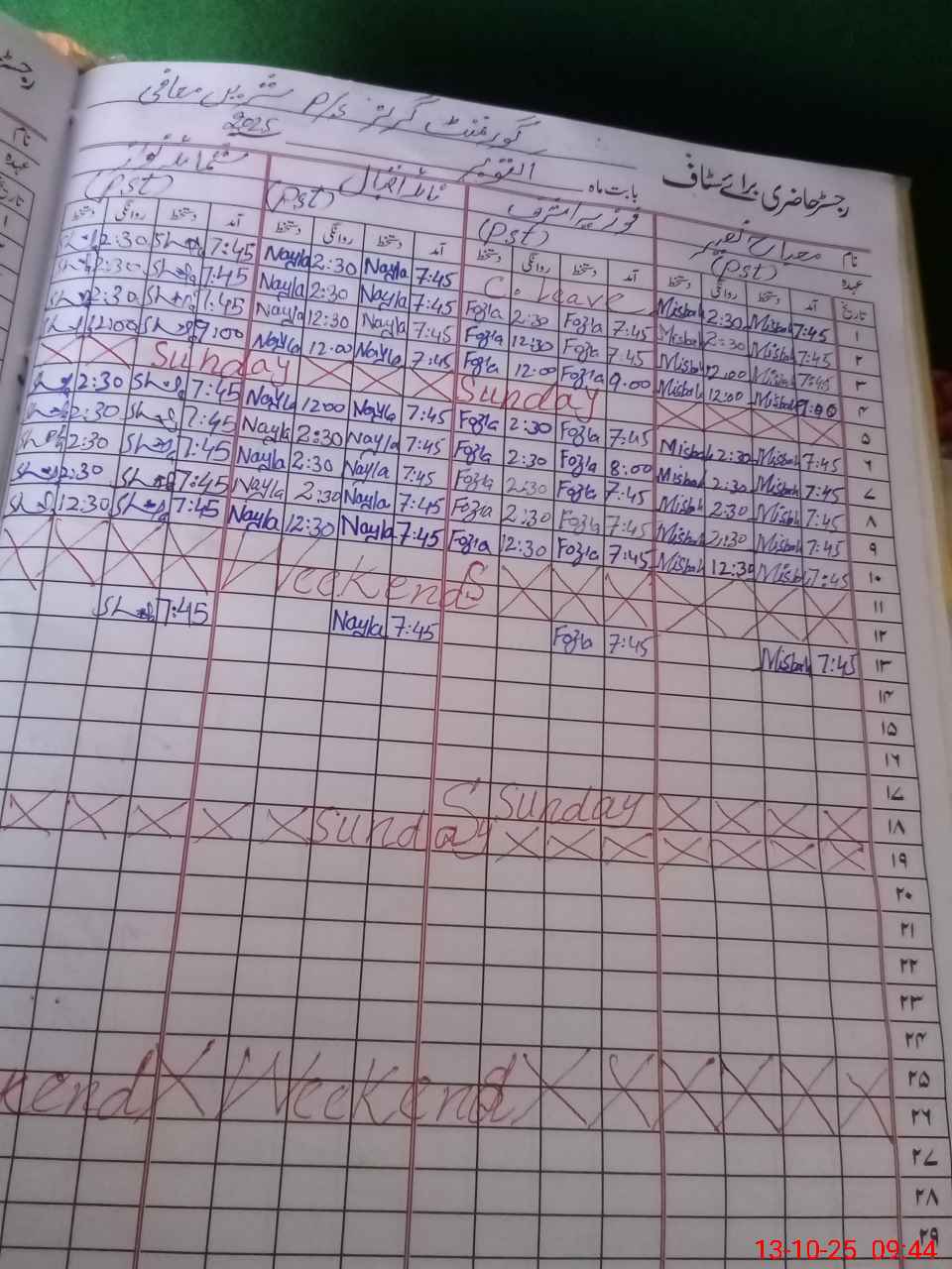 | Leave | Duty | Absent | Maternity | Medical | Ex- Pak |