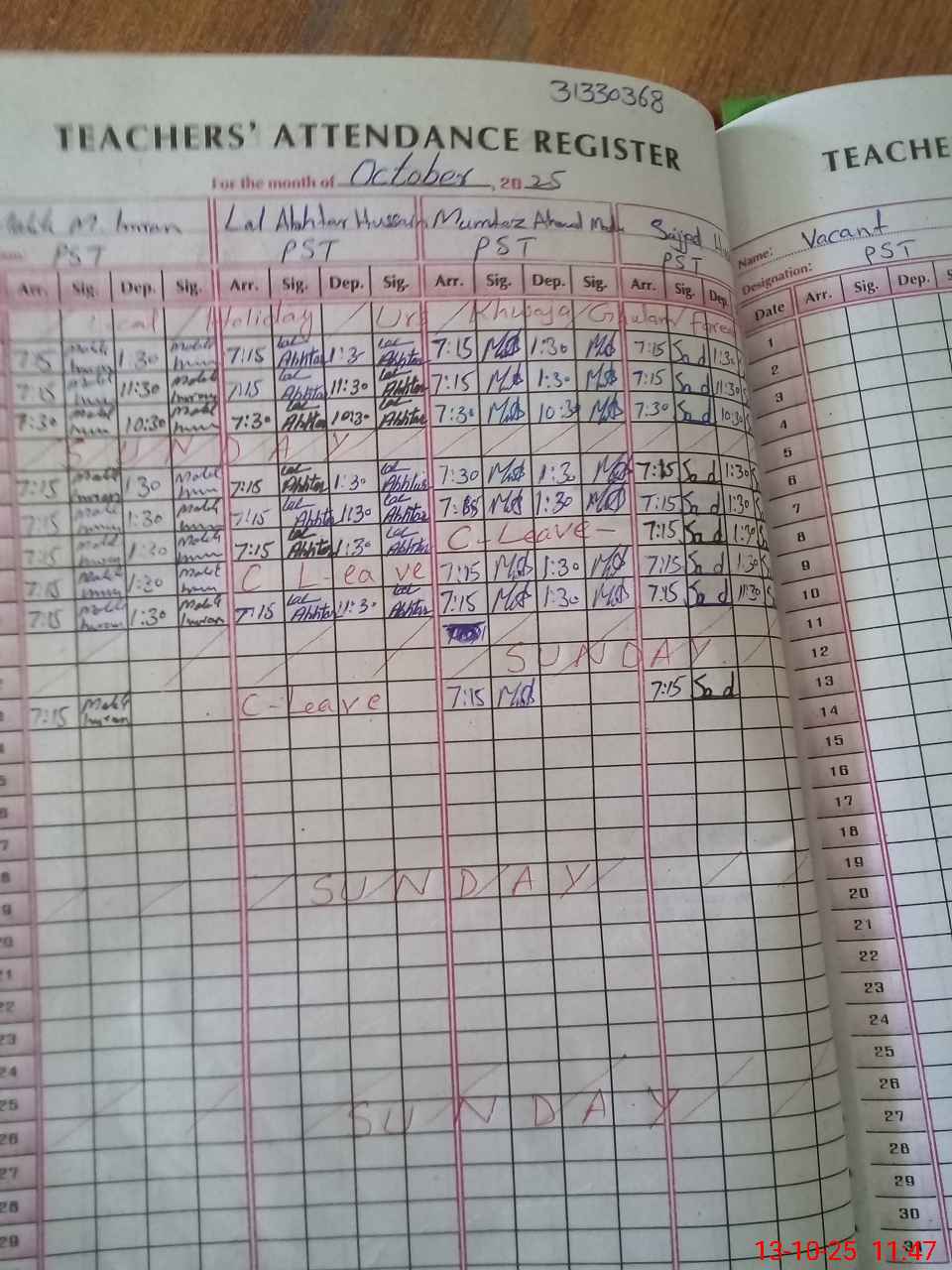 | 31**** | La**** Ak**** Hu**** | PST | Regular | 0 | 0 | 0 | 0 | 0 | 0 | 0 | 0 | 0 | Casual |