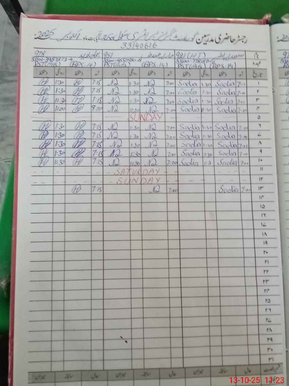 | CNIC | Full Name | Designation | R/C | Absence During Last Calender Month |